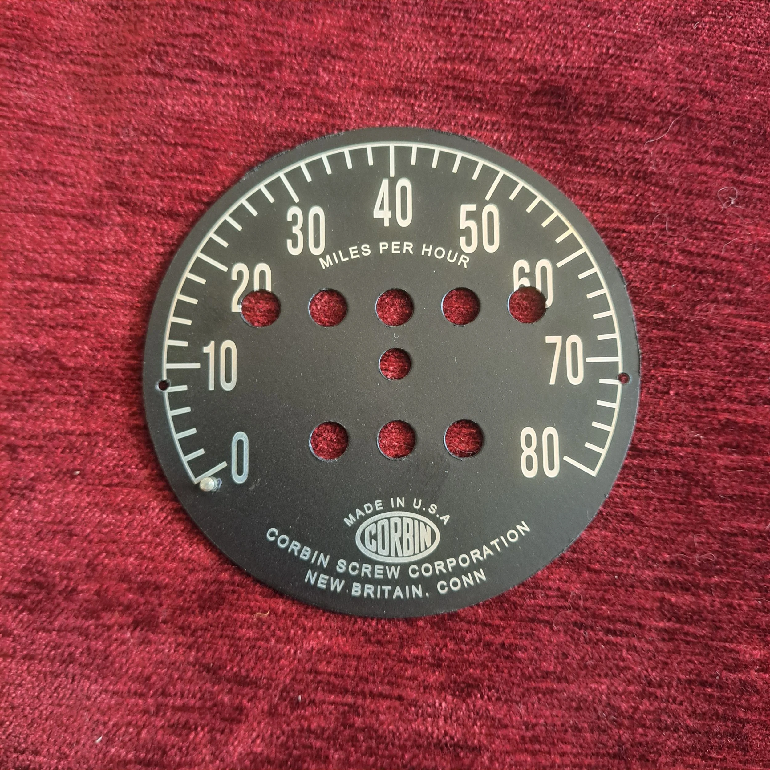 New reproduction face, made in-house. 80 Mph with oval Corbin logo.